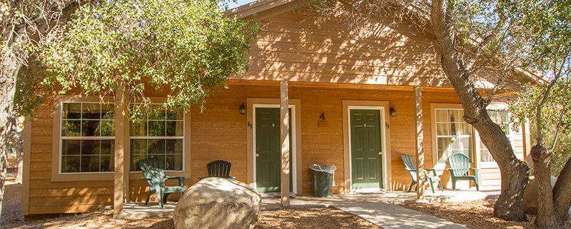 These new cabins are heated and air-conditioned with a front porch.  They are furnished with upgraded mattresses and include a shared bathroom within the cabin.